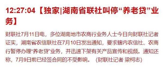 最近几日,湖南多家银行推出的“养老贷”产品在社交平台上引发广泛争议,一度登上热搜。而最新报道显示,湖南省农信联社已经发出通知,叫停了“养老贷”业务。